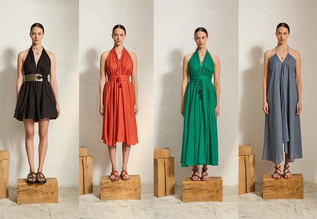La robe paréo malin Ava est l'un des modèles iconiques de Mare di Latte. Imaginée pour vous accompagner tout le long de la journée, il se porte de différentes façons. Existe aussi en version longue et mi-longue.