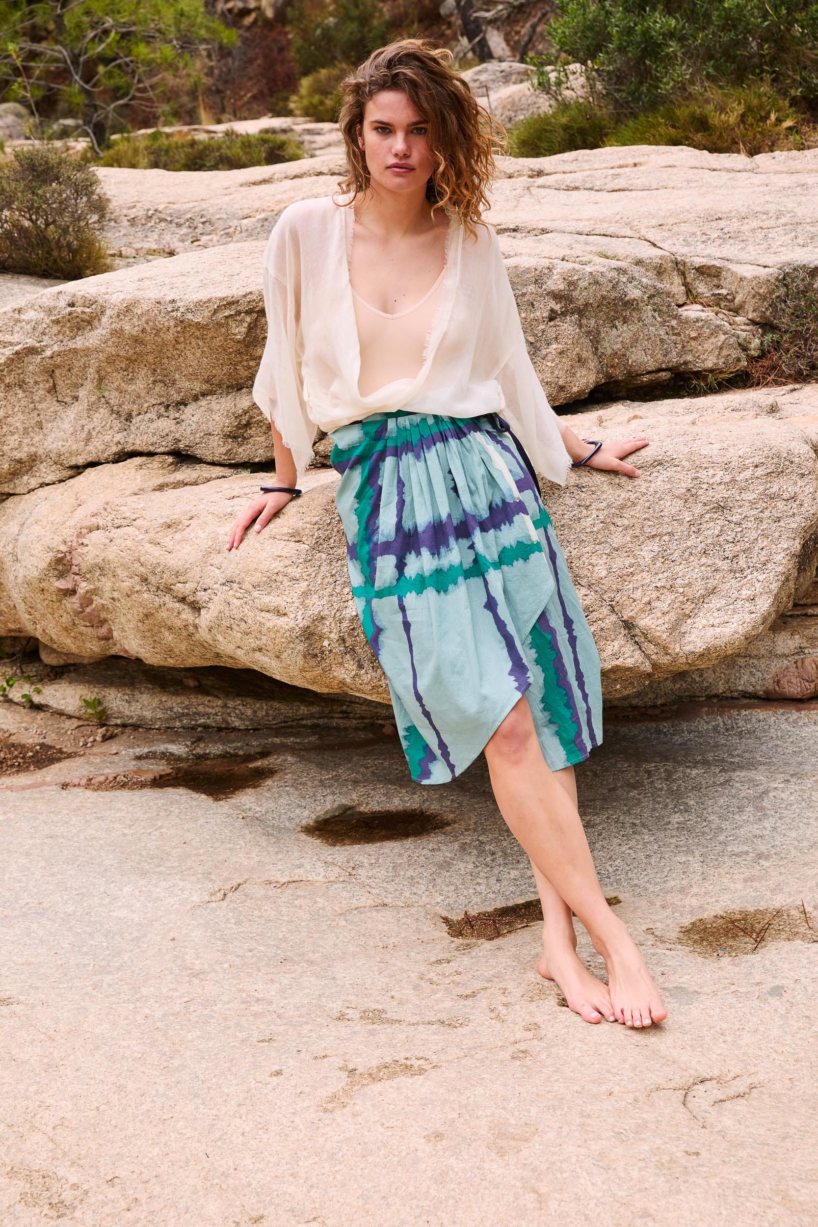 RACHEL MID-LENGTH KIMONO TIE AND DYE WOOL ETAMINE